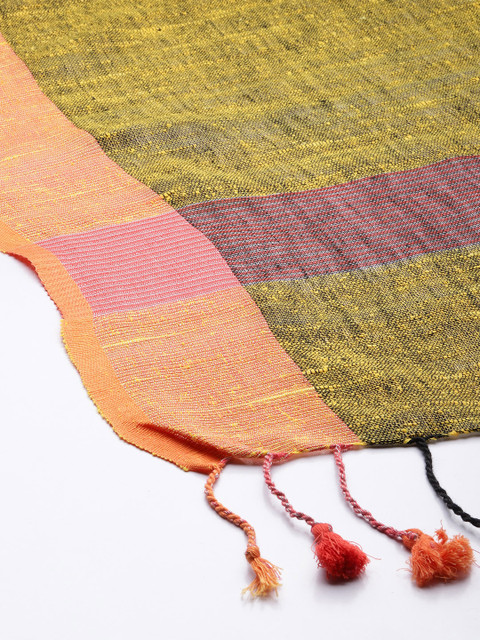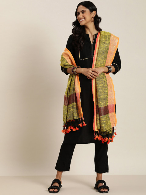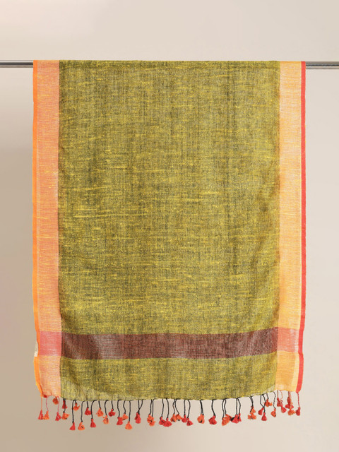 Green and peach-coloured solid dupatta zari, tasselled border