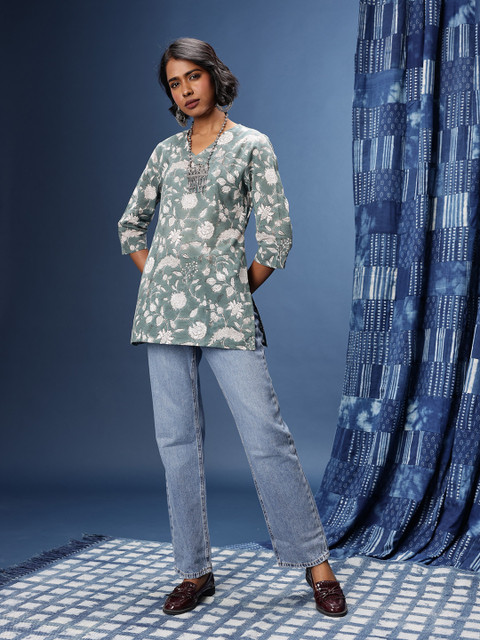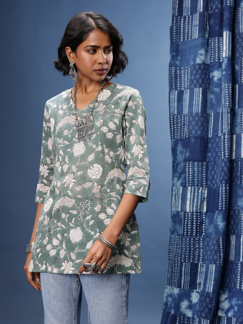 Sanganeri printing is a type of hand-block printing practiced by the Chippa community of Sanganer, Rajasthan. The most popular motifs of this 500 year old craft expressively depict the flora of Rajasthan, as well as other pervasive, innately Indian motifs like paisleys. Typically, Sanganeri prints feature these foliage motifs printed in bright colours onto white or light coloured base fabrics, creating a range of comfortable floral staples