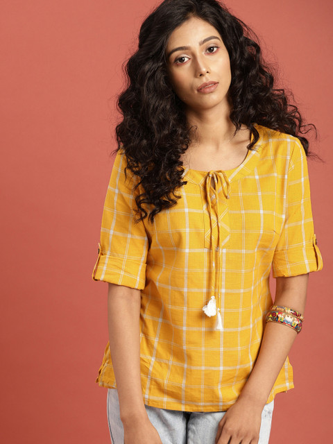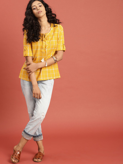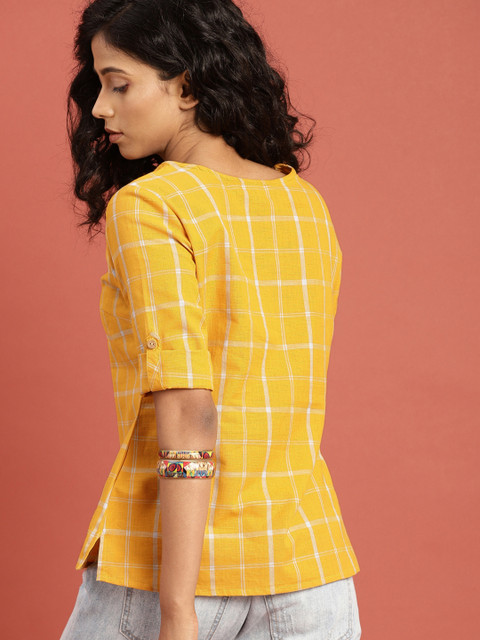 Inspired by Indian crafts, Taavi presents you this stylish handcrafted top. This piece is a stylish option for a nice family function or event when teamed with jeans and classic heels.