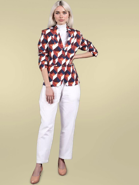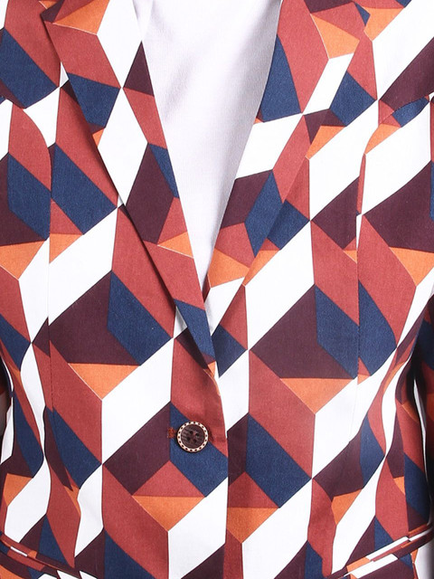 Red, blue and white printed regular-fit casual blazer, has a notched lapel, long sleeves, single-breasted with double button closure, two flap pockets and a single vent back hem