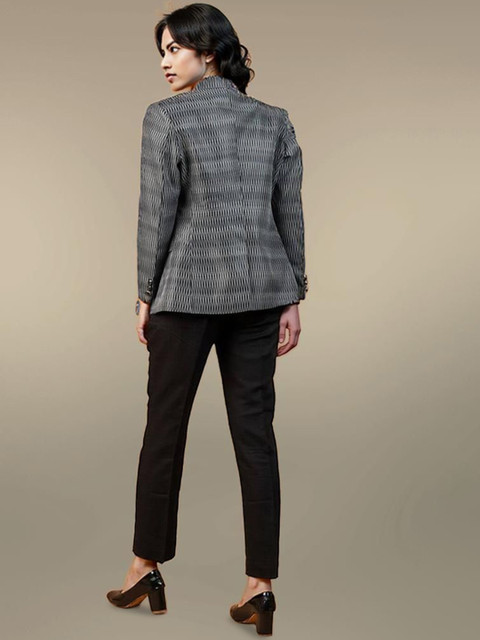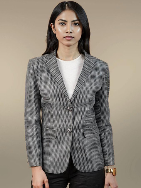 Grey and white printed regular-fit casual blazer, has a notched lapel, long sleeves, single-breasted with double button closure, two flap pockets and a vent-less back hem