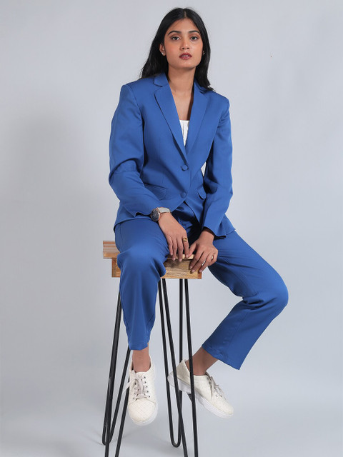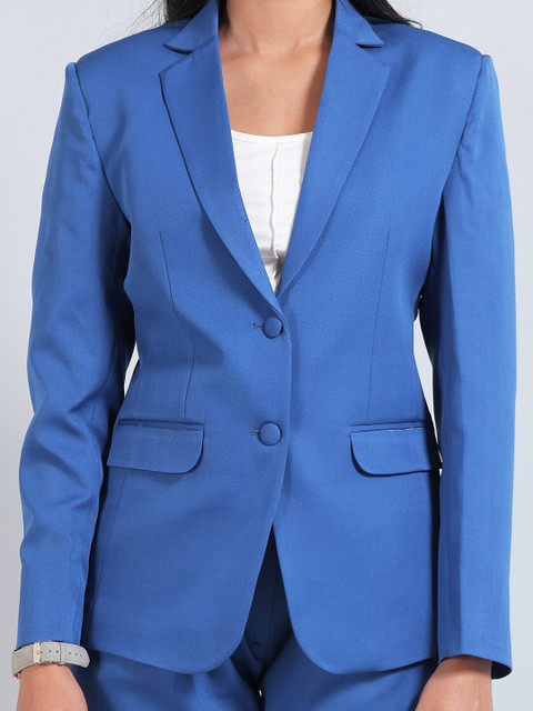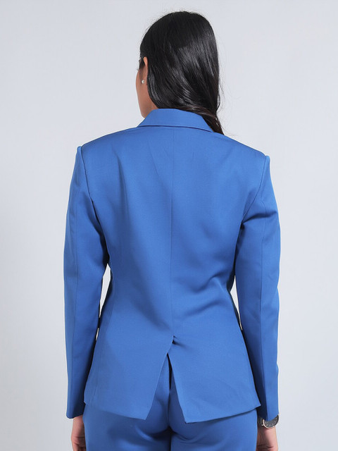 Blue solid regular-fit casual blazer, has a notched lapel, long sleeves, single-breasted with double button closure, two flap pockets, and a single-vented back hem