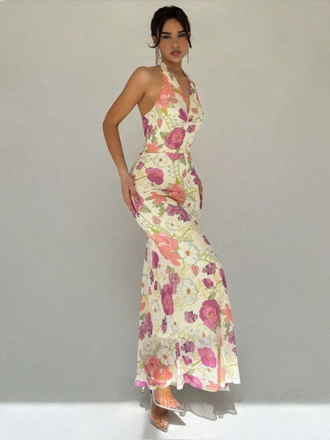 - Off White Floral print maxi dress