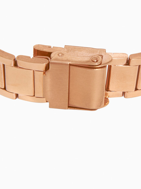 Strap Style: rose gold-plated, bracelet style, metal strap with a foldover