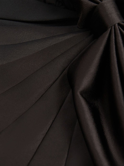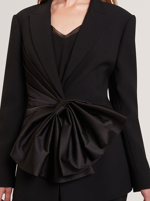 Black solid regular-fit casual blazer, has a notched lapel, long sleeves, single-breasted with ruched details