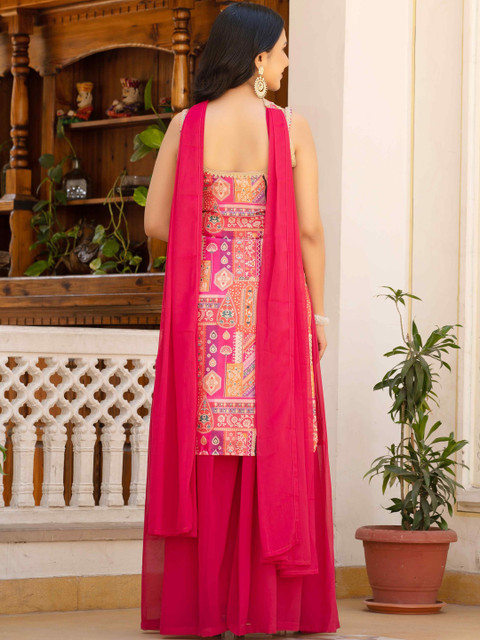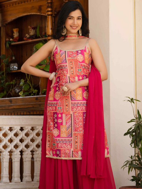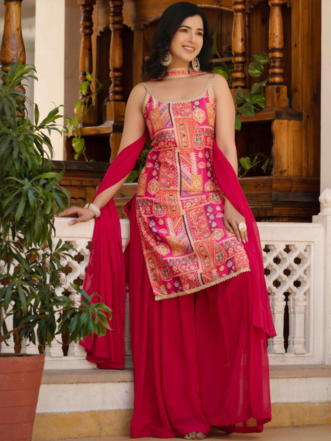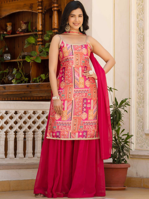 Pink printed Kurta with Sharara with dupatta