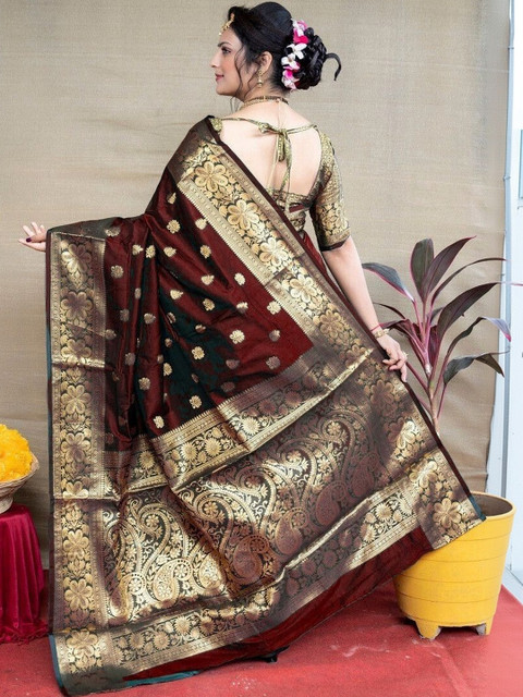 The blouse worn by the model might be for modelling purpose only. Check the image of the blouse piece to understand how the actual blouse piece looks like.