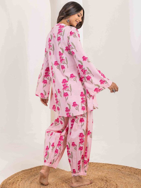 Pink and green printed tunic with salwar