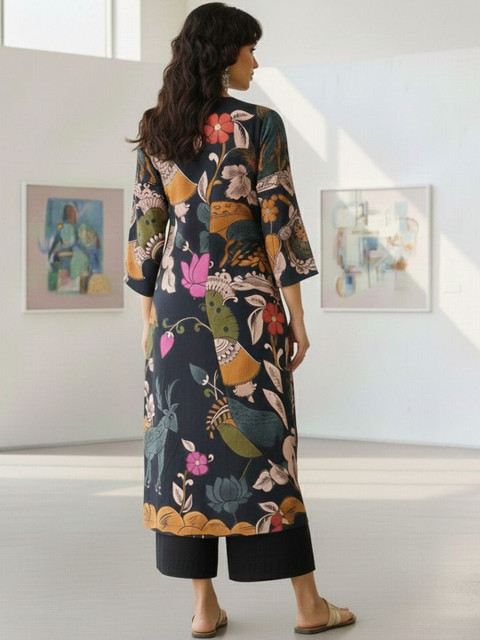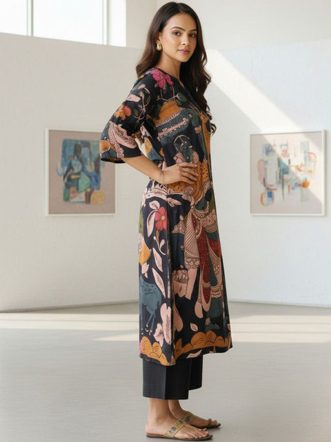 Pair this printed rayon kurta set with minimal jewelry and flat sandals for an effortless everyday look. For a polished touch, add statement earrings and juttisperfect for office wear or casual outings.
