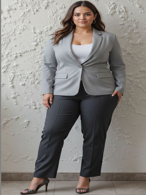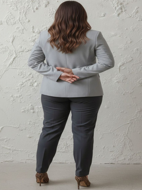 Grey solid l blazer, has a notched lapel, long sleeves, single-breasted with double button closure, two flap pockets, one welt pocket and a double-vented back hem