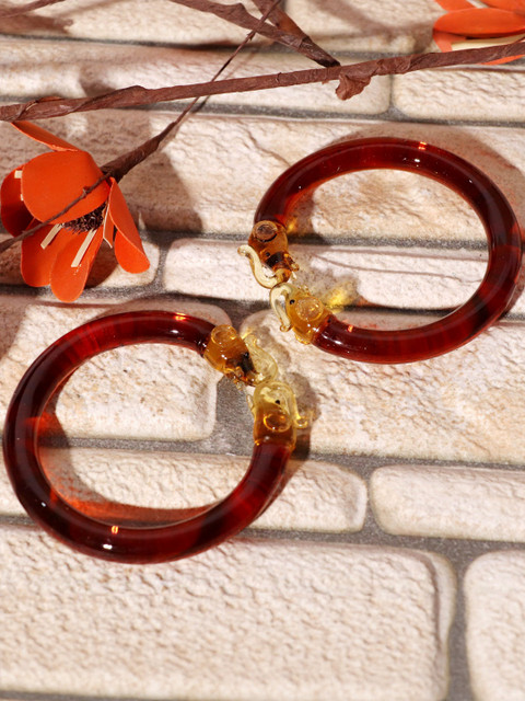 Maroon & yellow glass kada bangles, secured with slip-on closure