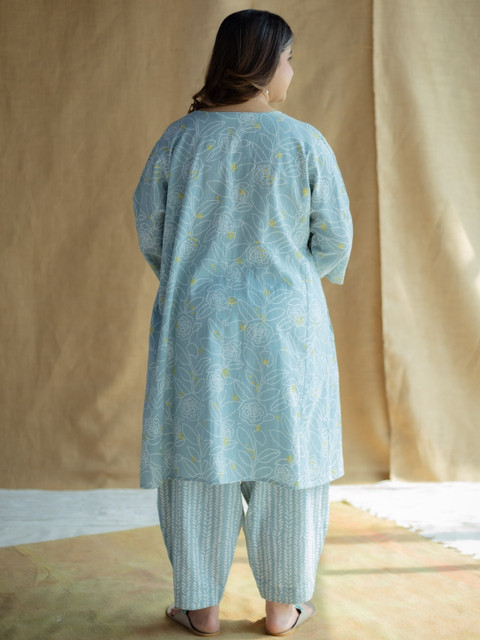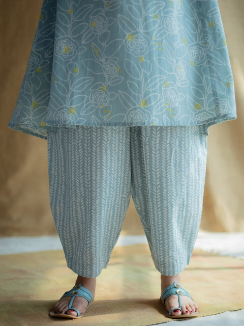 Material: Slub Cotton. Content: 1 Afghan Pant. Craft:Hand Block Print. Colour: Sky Blue. Style:Wide. Closure: Half elastic with drawstring.