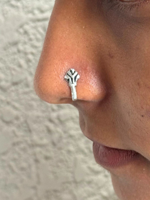 Inspired by powerful tribal symbols, this nose pin set adds bold character to ethnic and fusion looks.