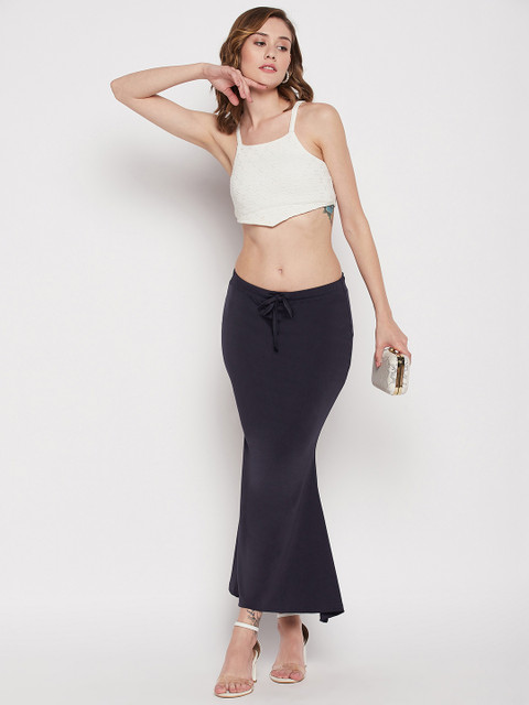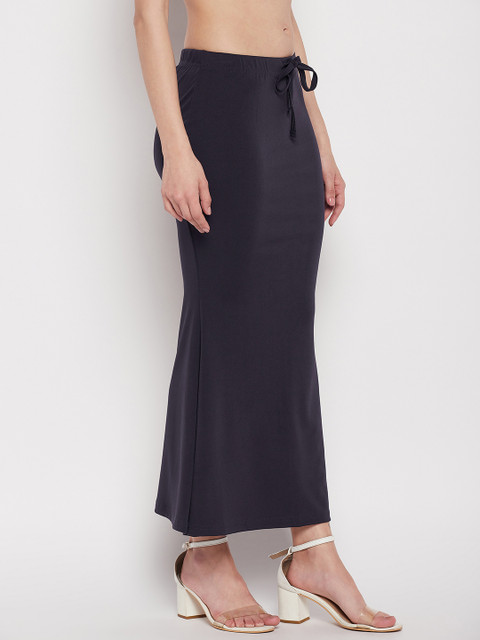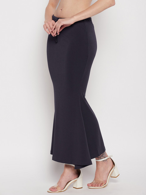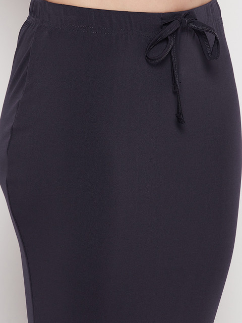 Charcoal black solid fishcut saree shapewear has an elasticated waistband with a drawstring closure and straight hem