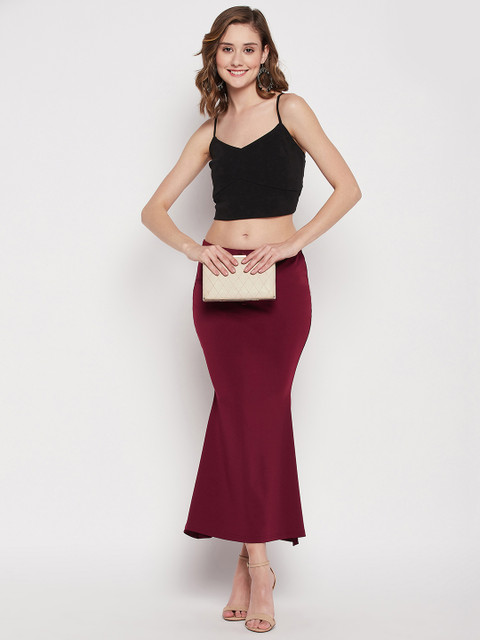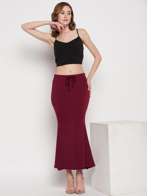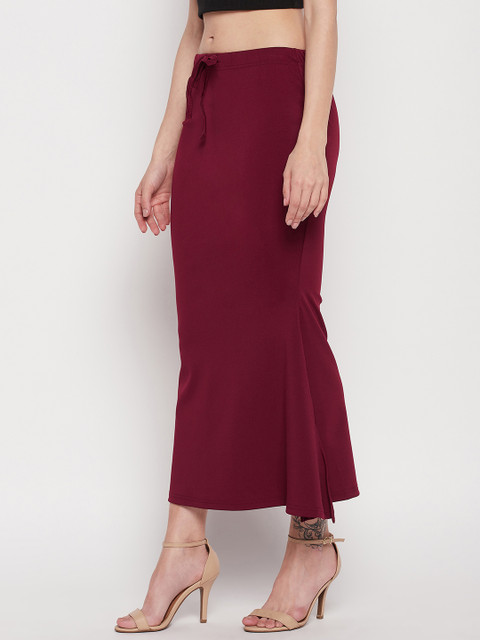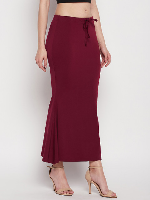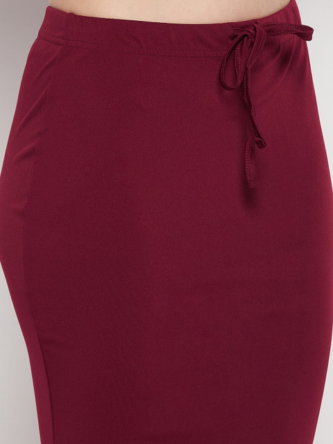 Maroon solid saree shapewear, has an elasticated waistband, mermaid-fit with drawstring closure, and side slit