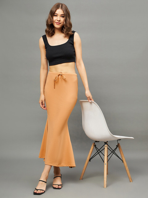 Bronze-coloured solid saree shapewear, has an elasticated waistband with drawstring closure