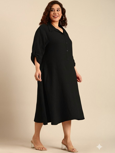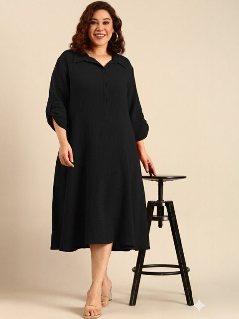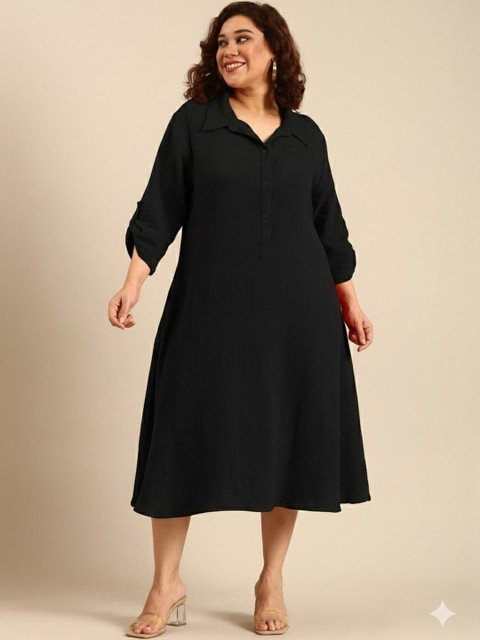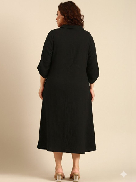 • Black solid a-line dress