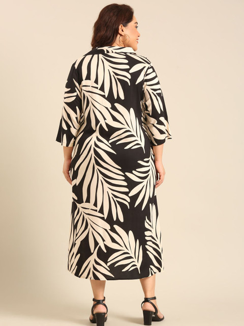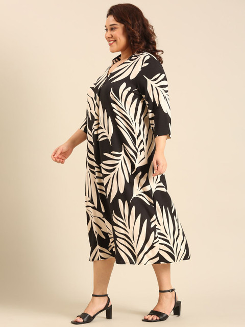 The Pink Moon Plus Size Tropical Print A-Line Midi Dress