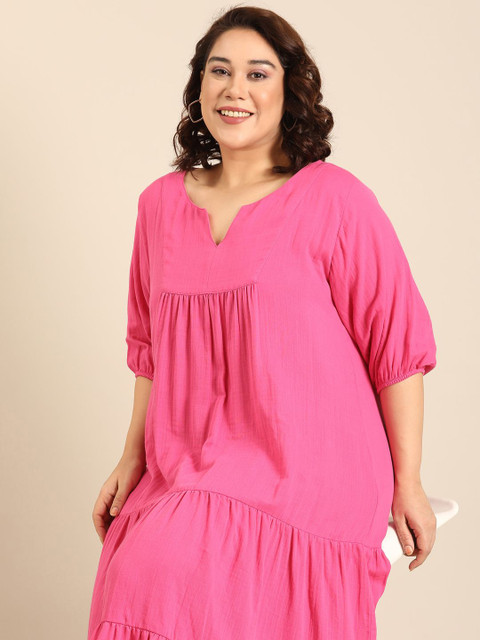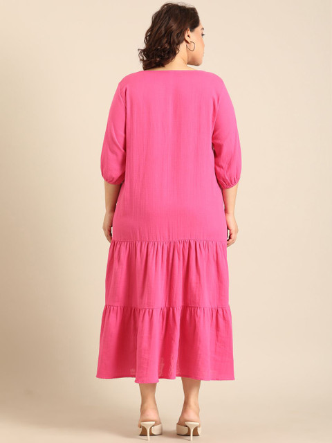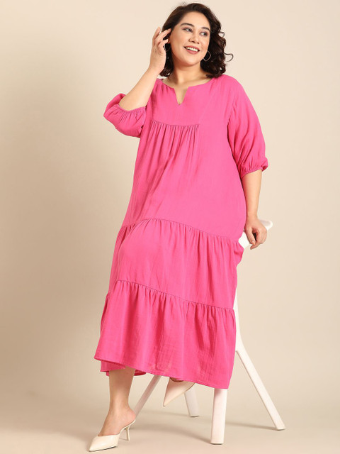 The Pink Moon Women Gathered or Pleated Tiered V-Neck Fit & Flare Midi Dress