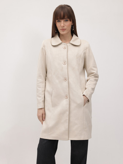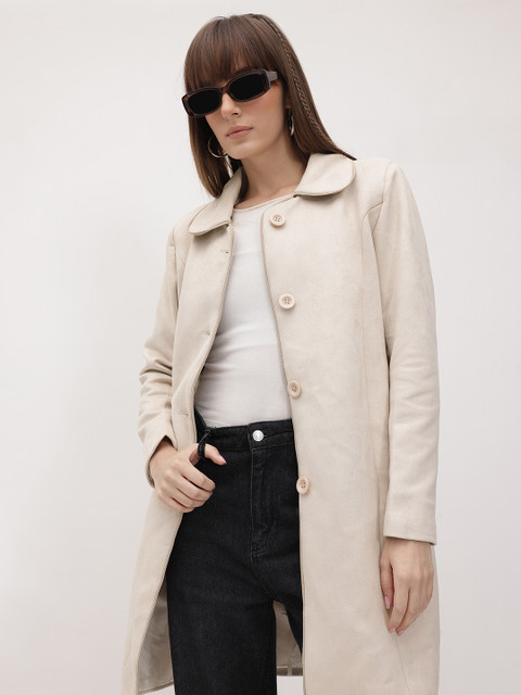 The Roadster Life Co. Peter Pan Collar Single-Breasted Suede Finish Overcoat