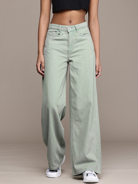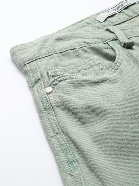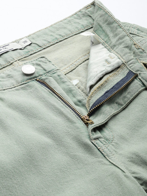 - Coloured shade, light fade green jeans
