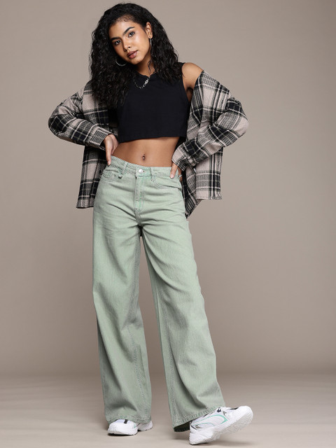 - Wide leg baggy, mid-rise