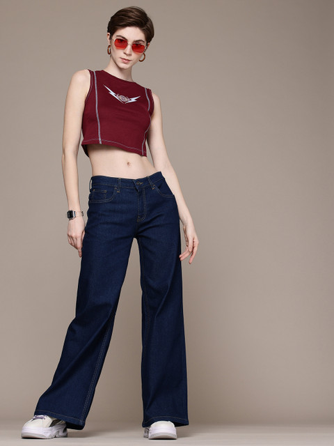 - Wide leg, mid-rise