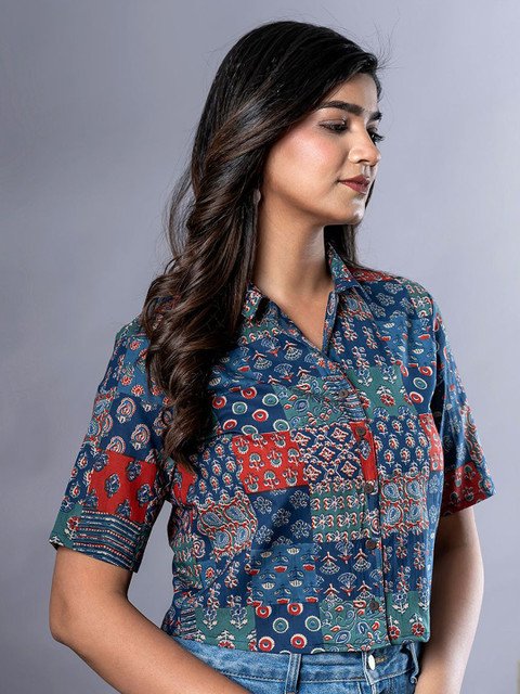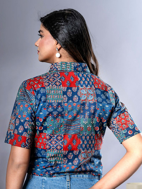 - Blue red & grey Shirt Style Top