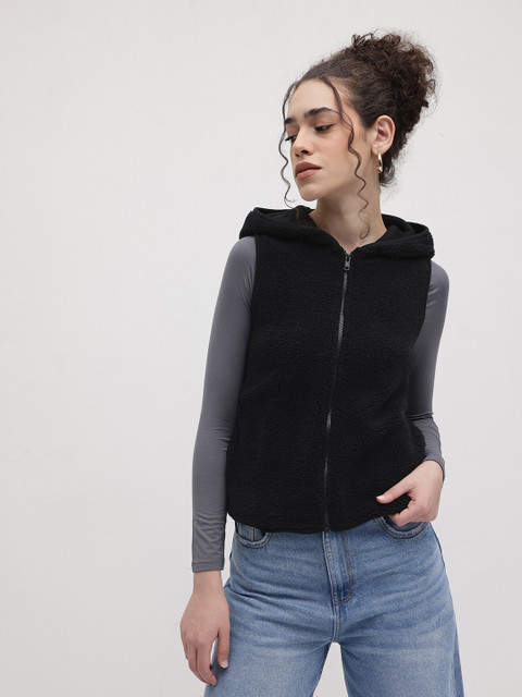 4 reviews for The Roadster Lifestyle Co. Solid Sleeveless Hooded Sherpa Jacket