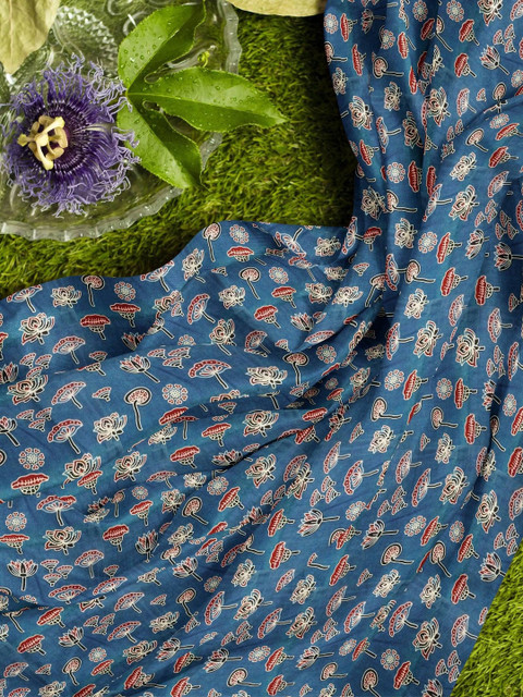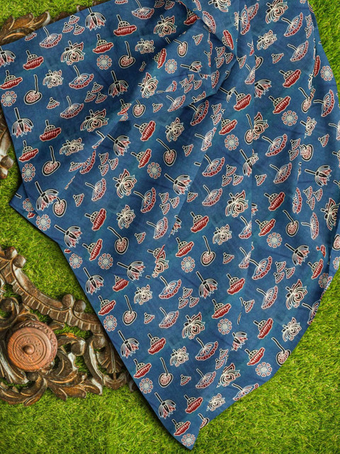 Blue, white and red ajrakh printed pure cotton unstitched kurta fabric