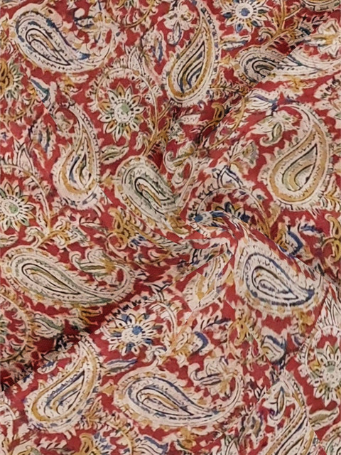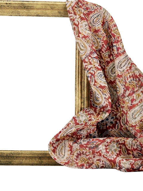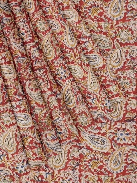 Maroon and cream kalamkari printed unstitched kurta fabric