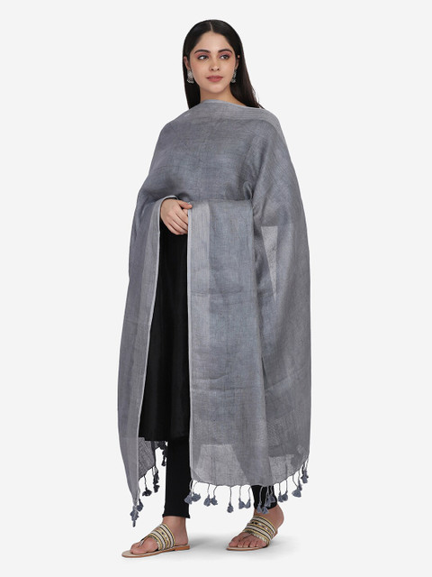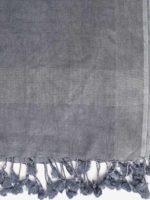 Grey solid dupatta zari, tasselled border