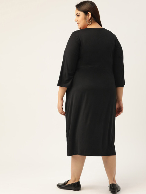 theRebelinme Plus Size Black A-Line Midi Dress
