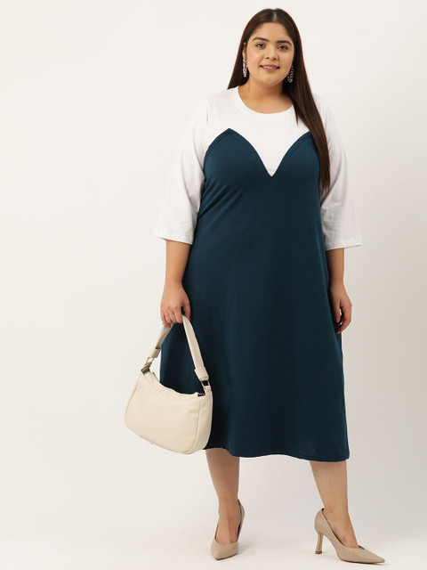 - Blue colourblocked a-line dress