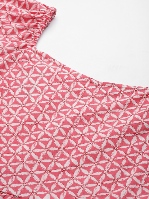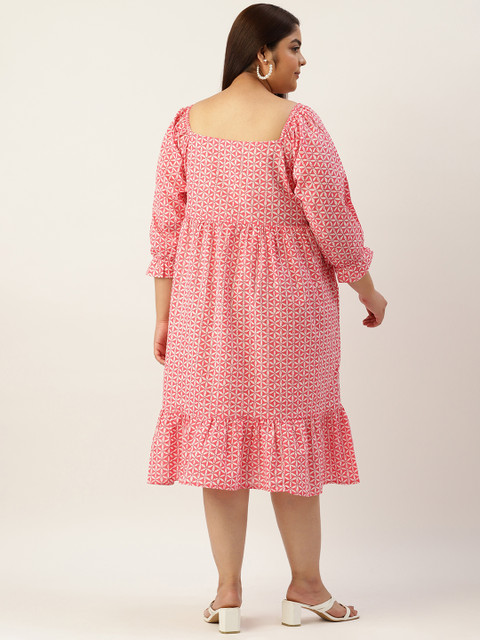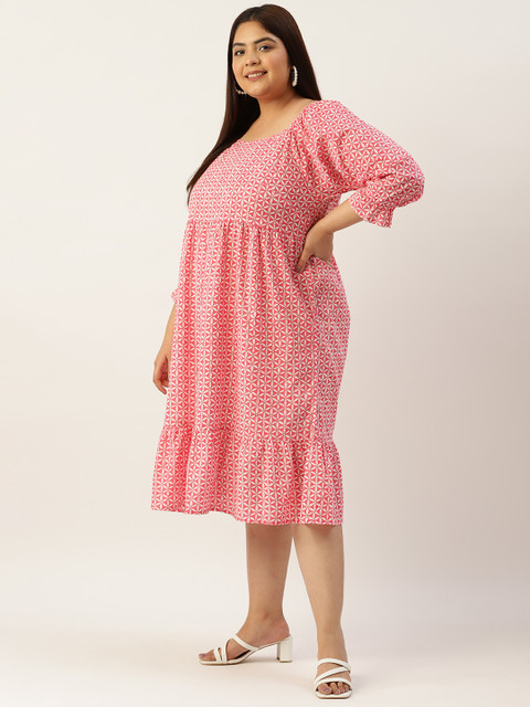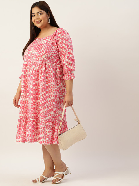 - Pink and off white floral print a-line dress