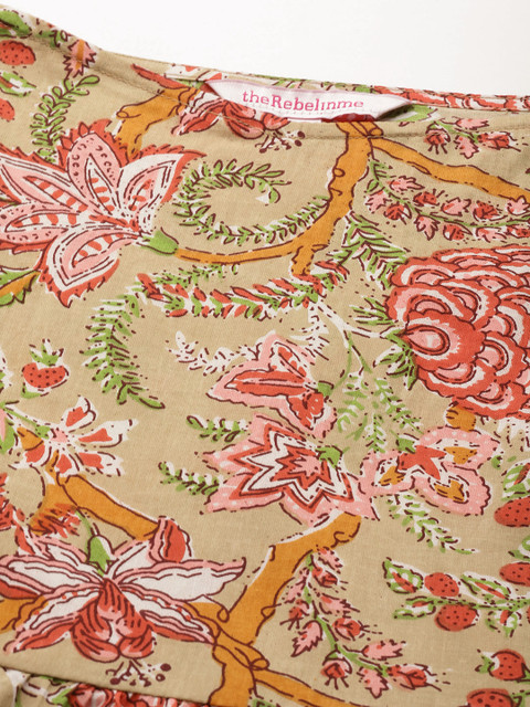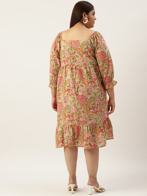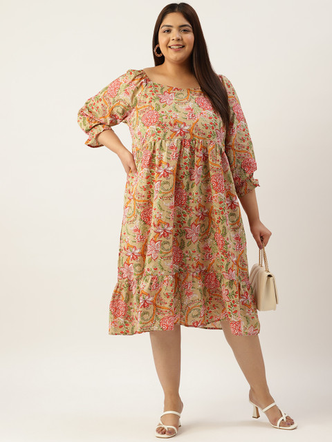 - Green and maroon floral print a-line dress