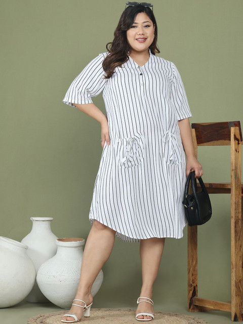 theRebelinme Plus Size Striped A-Line Dress
