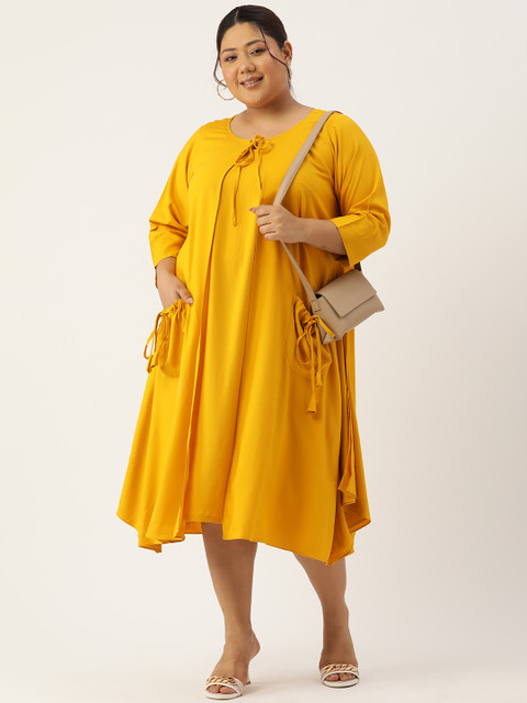 theRebelinme Plus Size Tie-Up Neck Layered A-Line Midi Dress