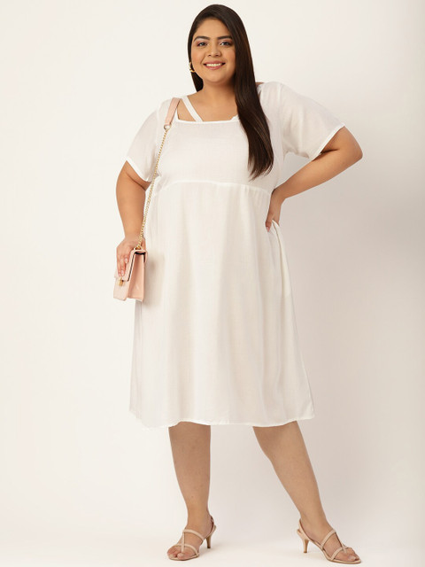 1 review for theRebelinme Plus Size White Solid Midi Dress