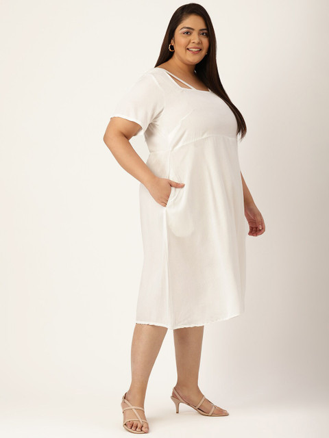 theRebelinme Plus Size White Solid Midi Dress