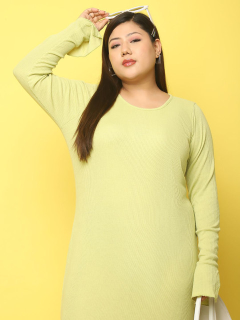 - Lime green solid a-line dress