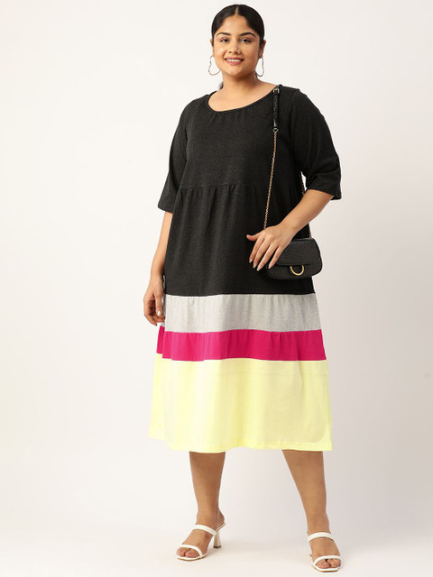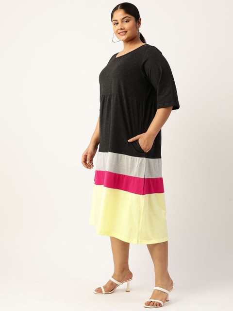 - Charcoal colourblocked a-line dress