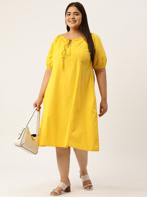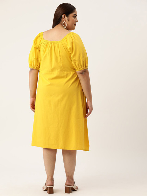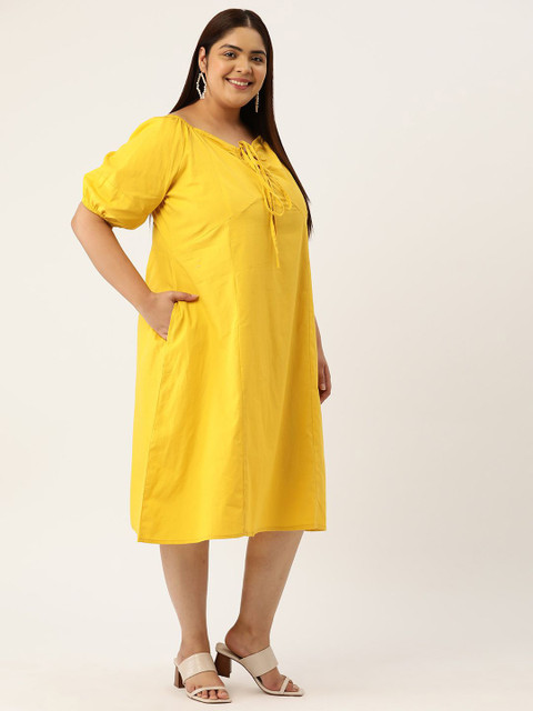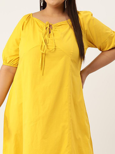 - Mustard yellow solid a-line dress