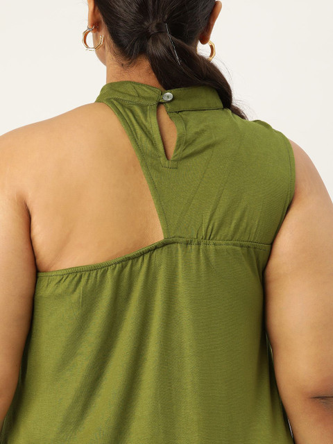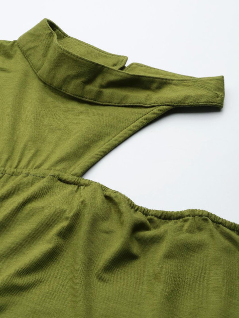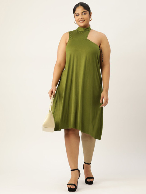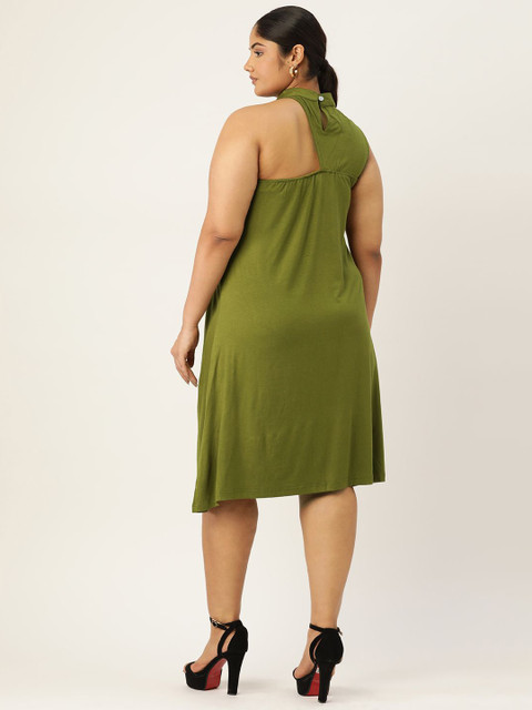 • Green solid a-line dress