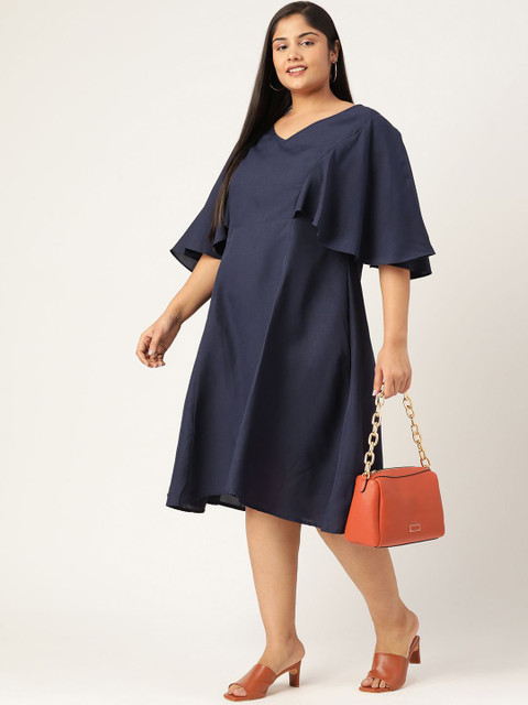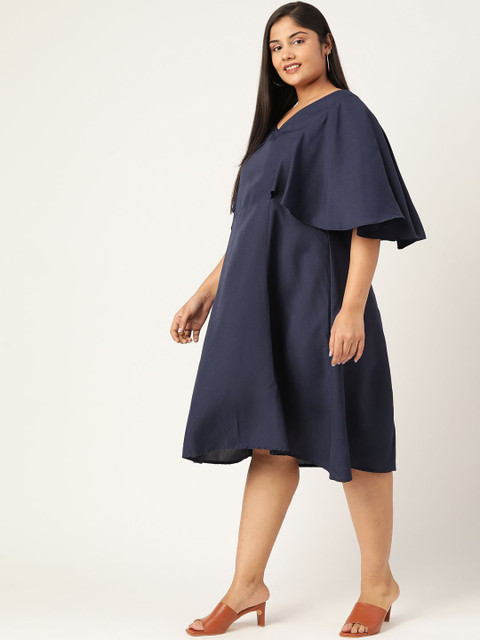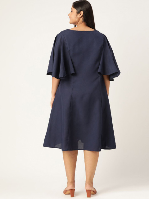 - Navy blue solid Plus Size A-Line Midi Dress