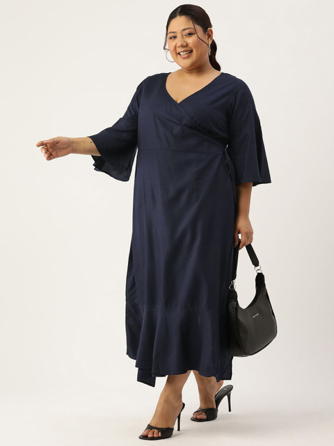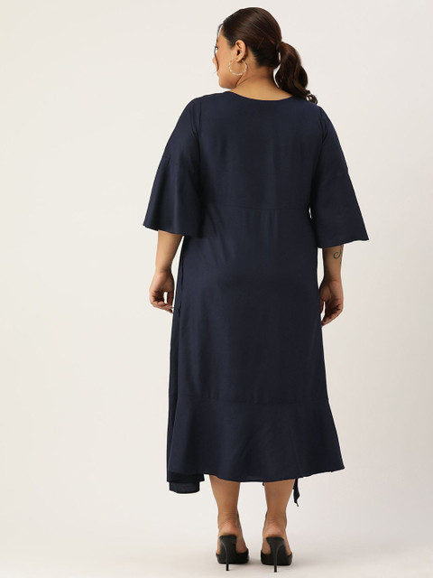 - Navy blue solid a-line dress