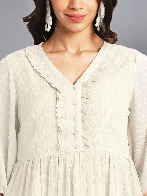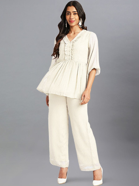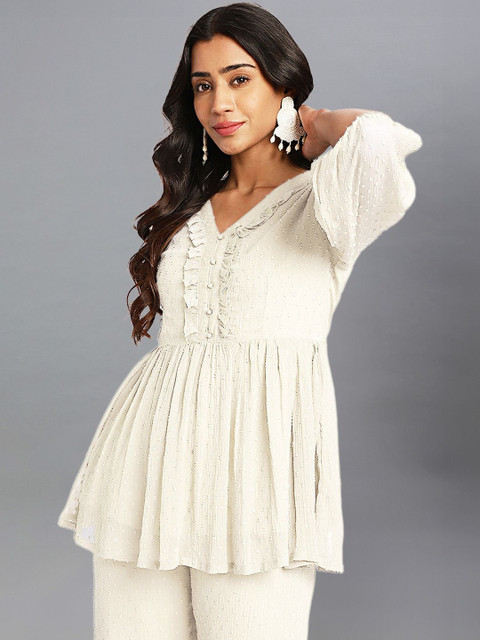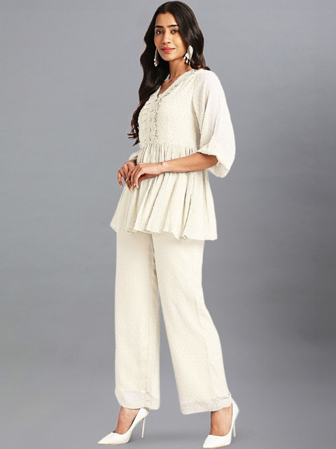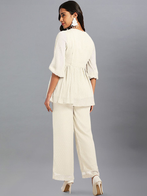 Off white self design Kurta with Trousers