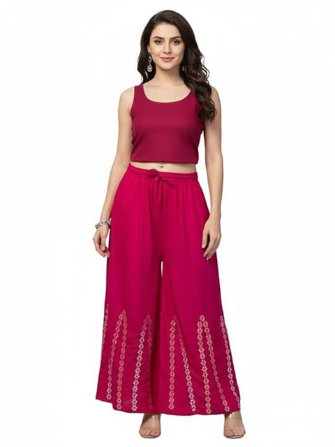 Thrifty Thread Ethnic Motifs Embellished Wide Leg Palazzos