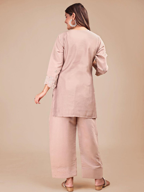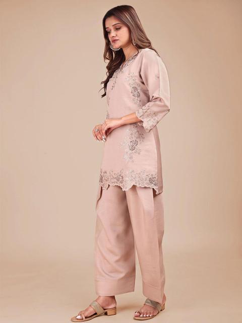 It’s a really pretty co ord set . The color and the material is very soft . It’s a very elegant piece and a must have in your closet. It will look elegant in any kitty party or any get together with your friends . Grab it before it’s gone ….!