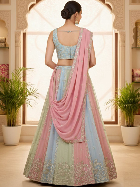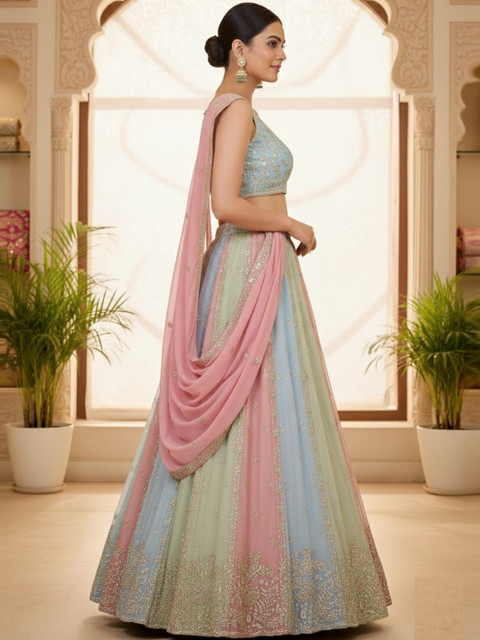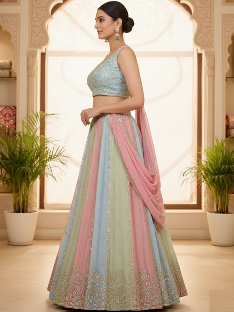 Multicoloured embellished lehenga choli with dupatta, sequinned